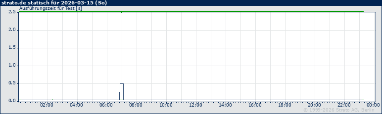 Im folgenden Graph geben blaue Punkte geben die Antwortzeit bei den einzelnen Messungen an, eine mehr order weniger horizontal verlaufende, graue Linie zeigt den gleitenden Durchschnitt für 15 Minuten an. Ein Pixel in der Fläche des Graphen (weiß) entspricht zwei Minuten bzw. Messungen.