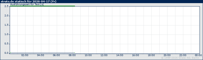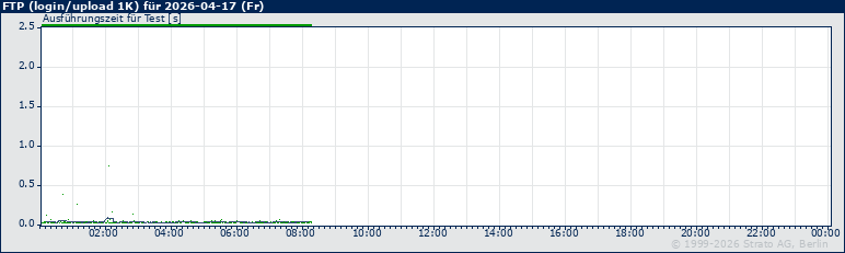 Im folgenden Graph geben blaue Punkte geben die Antwortzeit bei den einzelnen Messungen an, eine mehr order weniger horizontal verlaufende, graue Linie zeigt den gleitenden Durchschnitt für 15 Minuten an. Ein Pixel in der Fläche des Graphen (weiß) entspricht zwei Minuten bzw. Messungen.