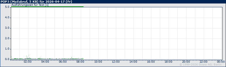 Am 2026-04-17 traten keine Timeouts/Fehler auf. Antworten, die erst nach 10 oder mehr Sekunden eingetroffen sind, sind auf der oberen X-Achse durch eine orange, Timeouts oder Fehler als graue Markierung hervorgehoben. Timeouts sind zusätzlich als vertikale graue Linie im Graph dargestellt.