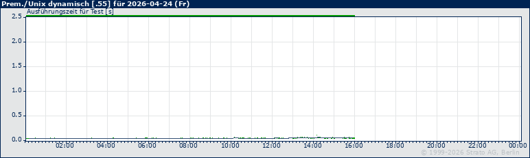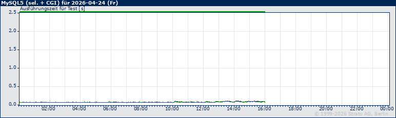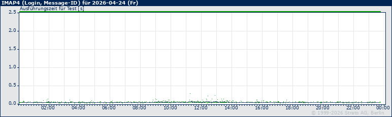 Im folgenden Graph geben blaue Punkte geben die Antwortzeit bei den einzelnen Messungen an, eine mehr order weniger horizontal verlaufende, graue Linie zeigt den gleitenden Durchschnitt für 15 Minuten an. Ein Pixel in der Fläche des Graphen (weiß) entspricht zwei Minuten bzw. Messungen.