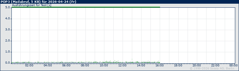 Am 2026-04-24 traten keine Timeouts/Fehler auf. Antworten, die erst nach 10 oder mehr Sekunden eingetroffen sind, sind auf der oberen X-Achse durch eine orange, Timeouts oder Fehler als graue Markierung hervorgehoben. Timeouts sind zusätzlich als vertikale graue Linie im Graph dargestellt.